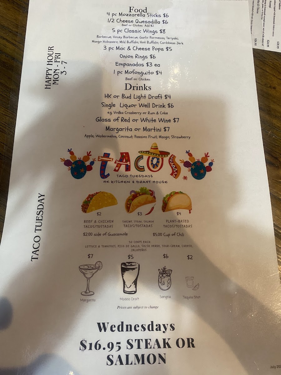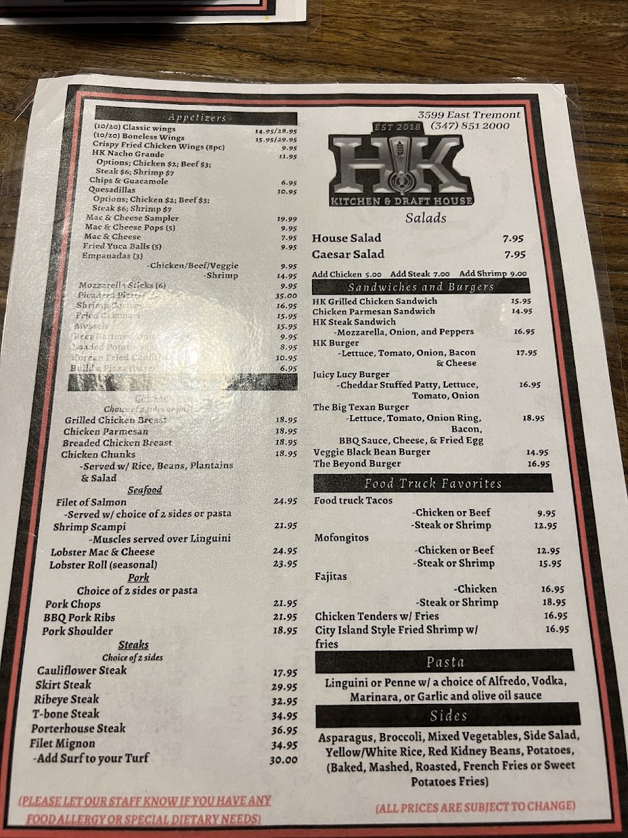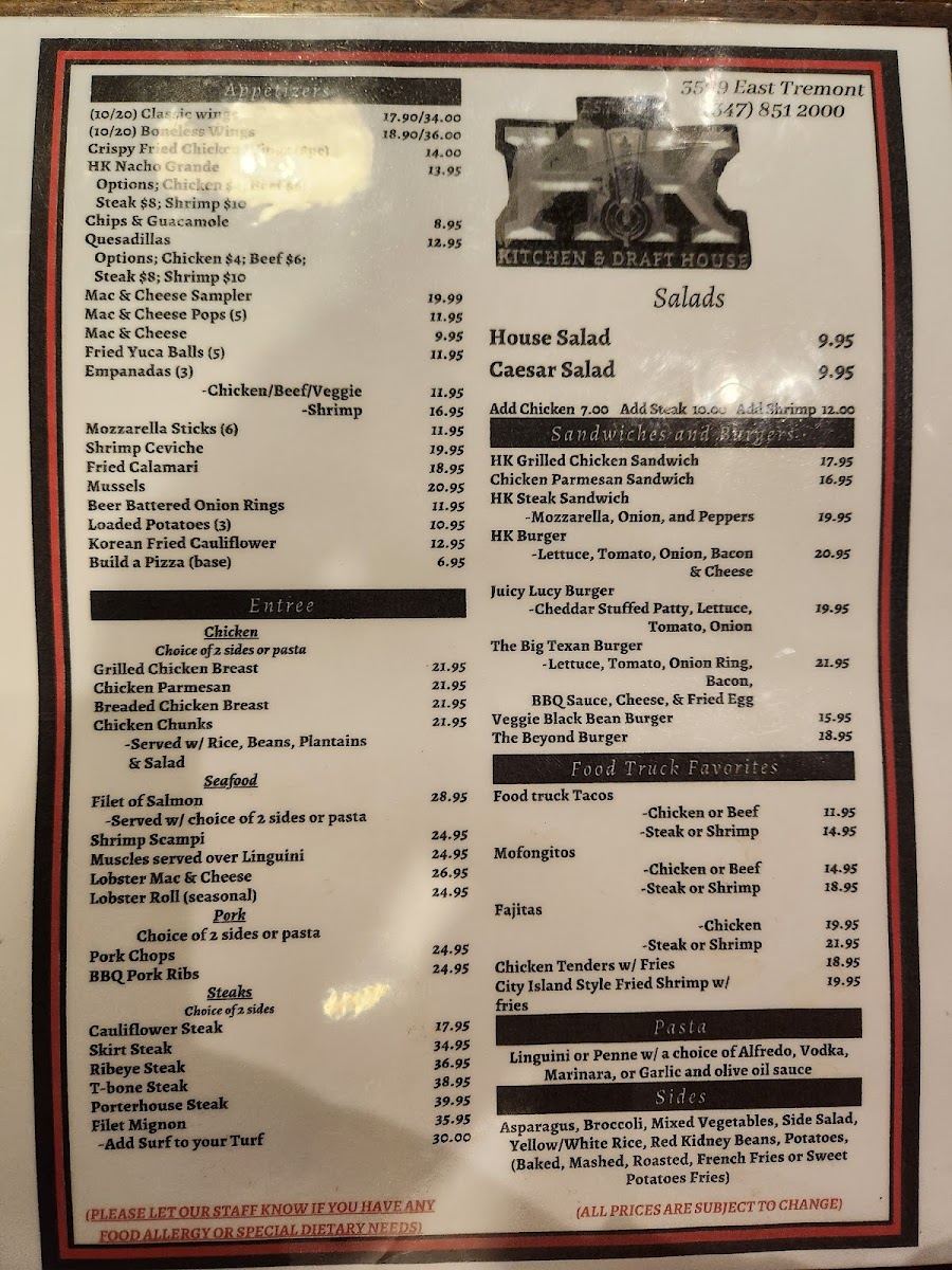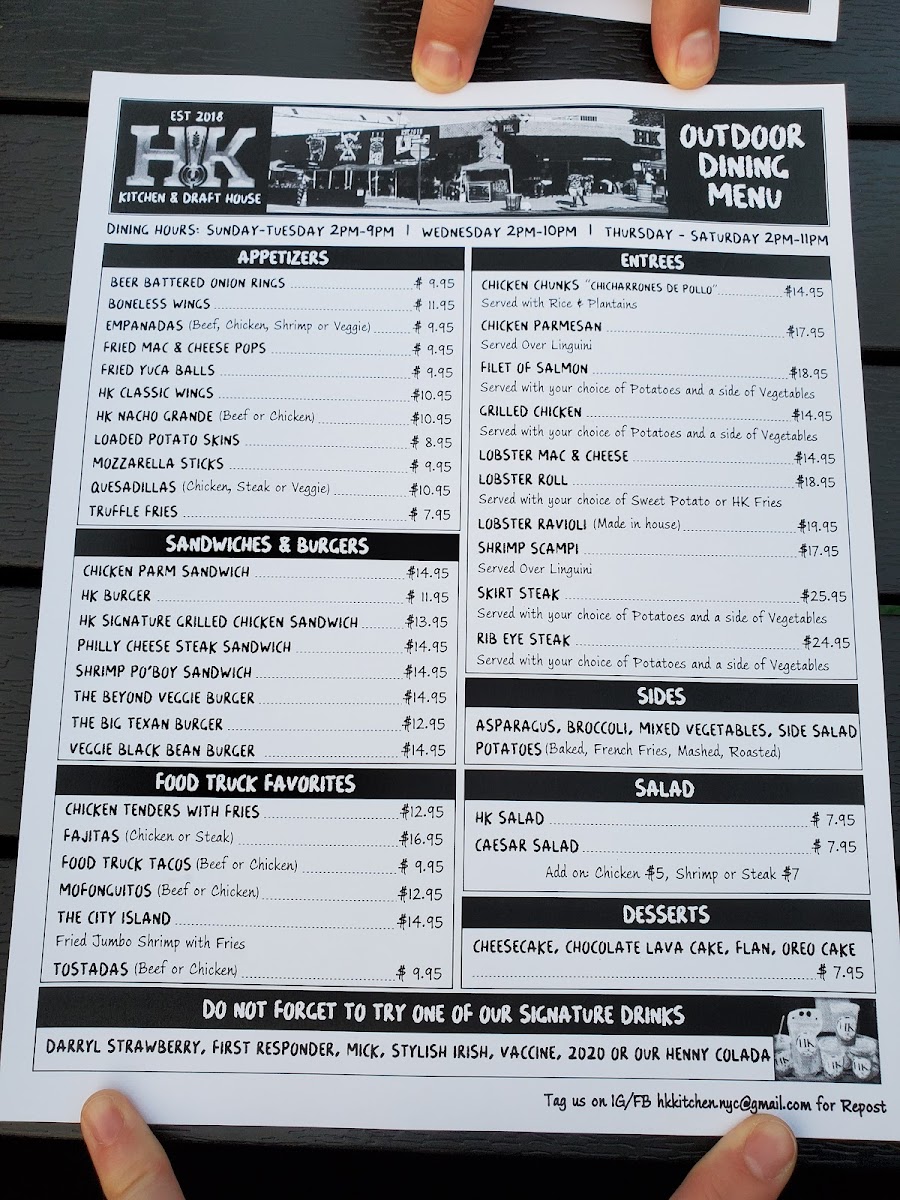 HK Kitchen & Draft House Menu